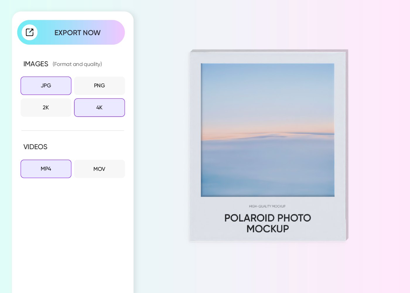 Export your Polaroid design as a PNG/JPG image, MP4 video, or online link.