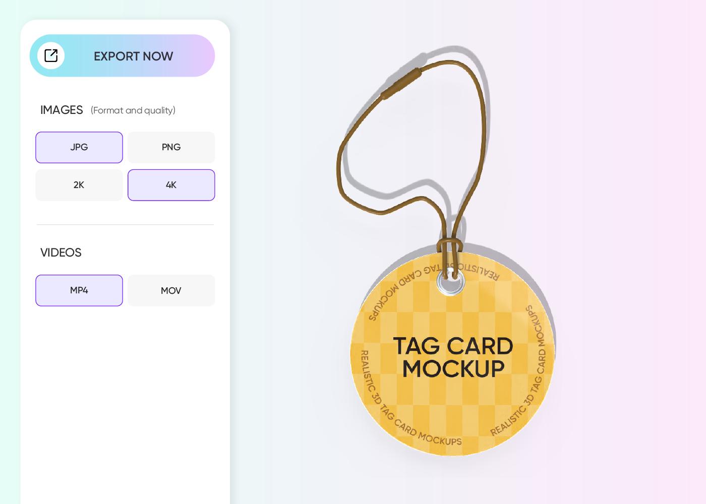 Luggage tags are key for identification and a prime spot for promoting a business or expressing individuality. Pacdora offers an extensive array of luggage tag mockups, showcasing different shapes, materials, and attachment methods. Simply upload your graphic, fine-tune colors, and pick a backdrop, then export stunning 4K JPG/PNG images or captivating MP4 videos. Begin conceptualizing your signature luggage tag today!